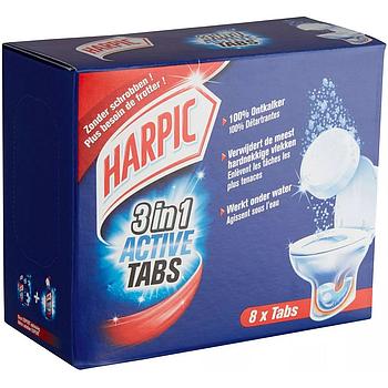 Harpic 3in1 Active Tabs для чрезвычайно чистого туалета без необходимости его чистить. 100% средство для удаления накипи, удаляет самые стойкие пятна, работает под водой.