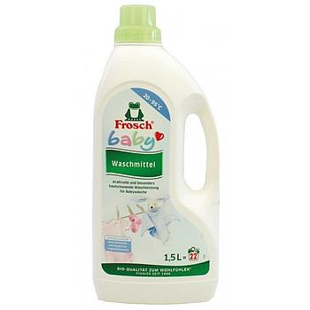 Гель для стирки Frosch с алоэ вера рекомендуется для стирки детской одежды, а также одежды людей с чувствительной кожей. Содержит специальные поверхностно-активные вещества (включая ПАВ, обычно используемые в косметике), экстракт растения Aloe Vera для смягчения кожи рук, не содержит красителей и консервантов. Подходит для регулярной машинной или ручной стирки всех видов одежды (кроме шерсти и шелка) при температуре от 30 °C до 95 °C. Геля хватает до 24 стирок. Средство гарантирует удаление устойчивых загрязнений (от молока, овощей, фруктов); глубокую очистку ткани.