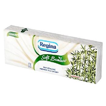Гигиенические салфетки Regina Soft Bamboo — мягкие гигиенические салфетки, которые состоят на 90% из целлюлозы и на 10% из бамбукового волокна. Благодаря нежной структуре салфетки не раздражают кожу носа и лица.