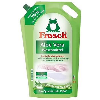 Гель для стирки Frosch с алоэ вера рекомендуется для стирки детской одежды, а также одежды людей с чувствительной кожей. Содержит специальные поверхностно-активные вещества (включая ПАВ, обычно используемые в косметике), экстракт растения Aloe Vera для смягчения кожи рук, не содержит красителей и консервантов. Подходит для регулярной машинной или ручной стирки всех видов одежды (кроме шерсти и шелка) при температуре от 30 °C до 95 °C. Геля хватает до 24 стирок. Средство гарантирует удаление устойчивых загрязнений (от молока, овощей, фруктов); глубокую очистку ткани.